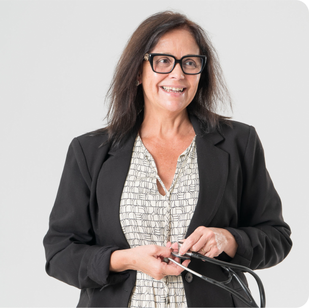 Com mais de 30 anos de experiência em cardiologia, a Dra. Rosângela Campos conduz um modelo de cuidado online: humanizado, familiar e contínuo.